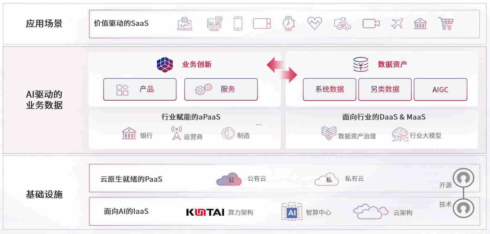 数字时代,,围绕企业数字化转型的关键要素,,,OK钱包数码开创性的提出数云融合战略和技术体系框架,,,着力在云原生、、数字原生、、、、AI原生和信创产业上架构产品和服务能力,,,为处在不同数字化转型阶段的快消零售、、、汽车、、金融、、、医疗、、、政企、、、教育、、、、运营商等行业客户提供泛在的敏捷IT能力和融合的数据驱动能力,,构建跨界融合创新的数字业务场景和新业务模式,,,助力企业级客户建立面向未来的核心能力和竞争优势,,,,全面推动社会的数字化、、、、智能化转型升级。。